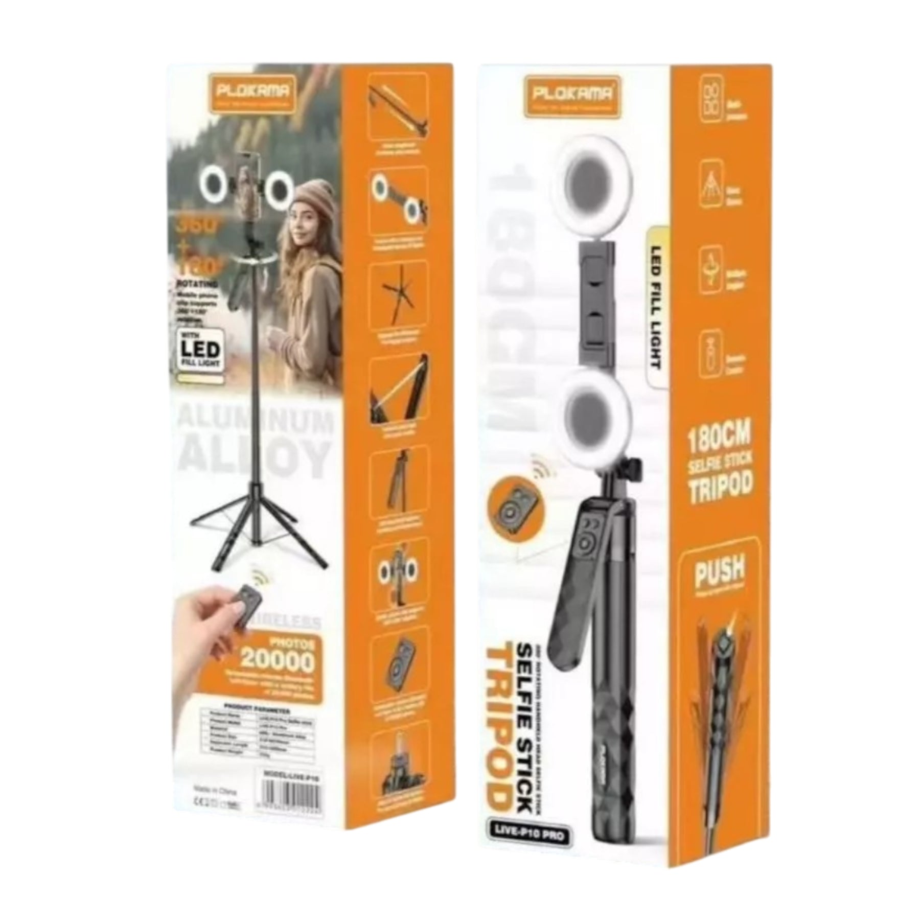 Le Plokama Live-P10 Pro est un accessoire polyvalent pour smartphones et caméras légères, combinant un bâton selfie extensible et un trépied stable. Il est parfait pour le vlogging, les lives, la création de contenu et la photographie mobile.